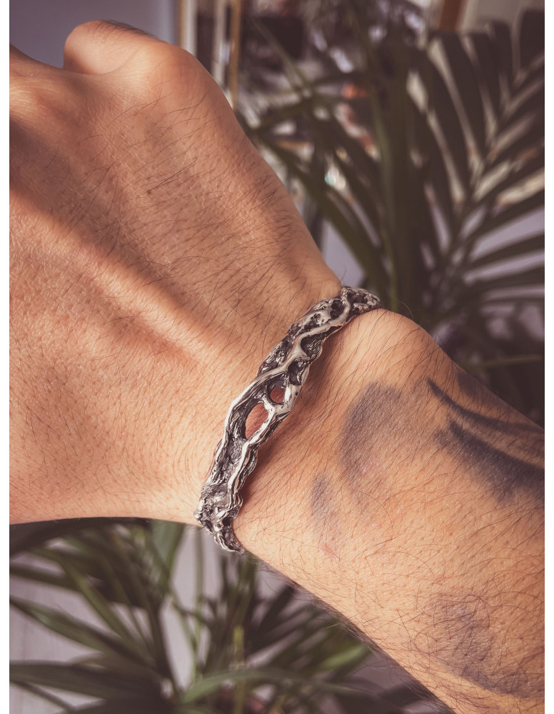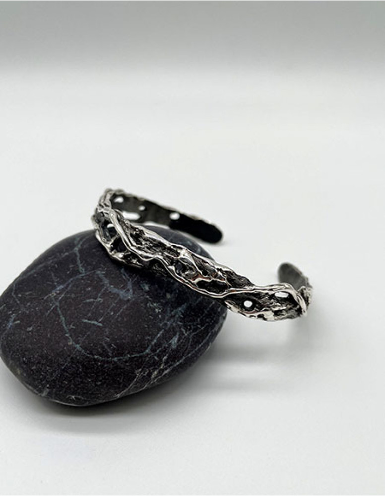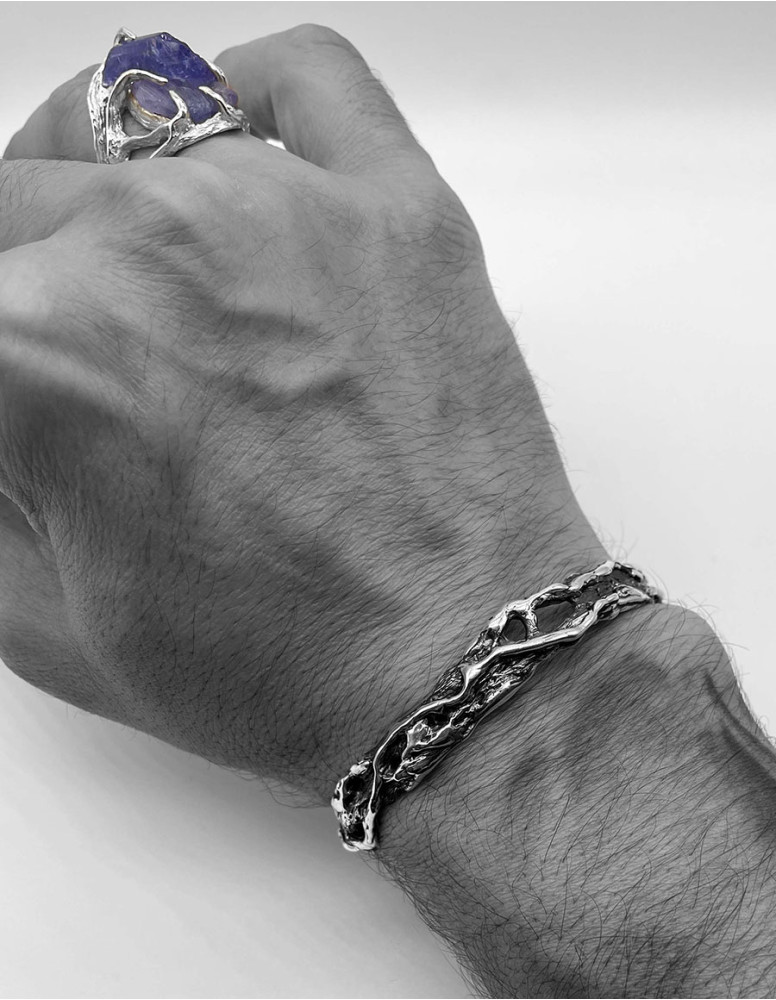 Jewelry’nin Silent Forest koleksiyonuna ait Thorn bileklik, doğanın güçlü ve özgün dokusunu yansıtan özel bir tasarımdır. El yapımı ve tek adet üretilmiş olan bu bileklik, 925 ayar gümüş ile işlenmiş olup, doğadan ilham alınan detaylarıyla zarif bir stil sunuyor. Thorn bileklik, kendine özgü ve doğal görünümüyle günlük şıklığınızın vazgeçilmezi olacak. Her detayında özenle işlenmiş bu tasarım, sizi doğayla bir araya getirerek benzersiz bir aksesuar deneyimi sunuyor.