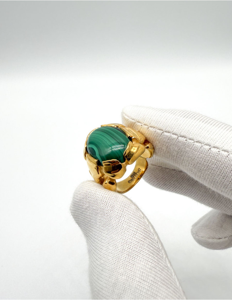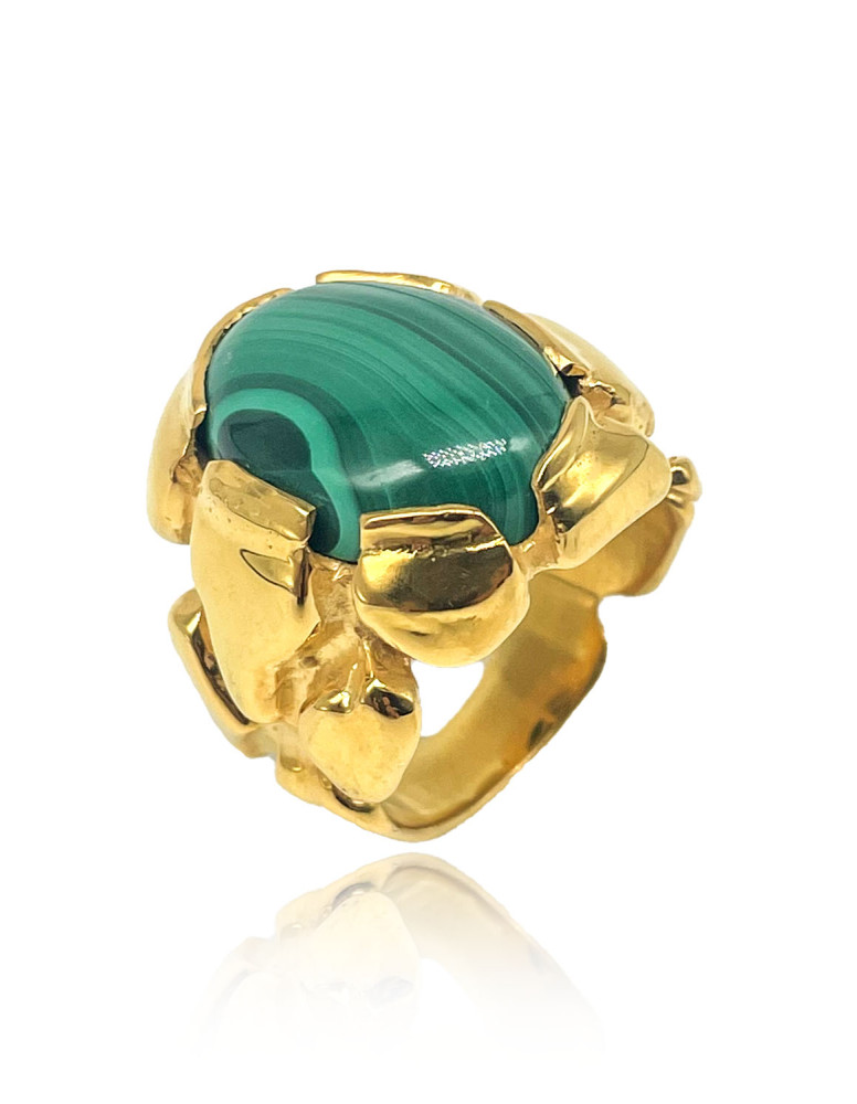 Jewelry’nin Silent Forest koleksiyonuna ait Lireta yüzük, malakit taşının derin yeşil tonlarıyla doğanın huzurunu ve gücünü yansıtan özel bir tasarımdır. El yapımı ve tek adet olarak üretilen bu yüzük, 925 ayar gümüş üzerine 18 ayar altın kaplama ile zarif ve sofistike bir görünüm sunar. Doğadan ilham alan bu eşsiz yüzük, günlük stilinize benzersiz bir dokunuş katarak, her anı daha özel kılmak için tasarlandı.