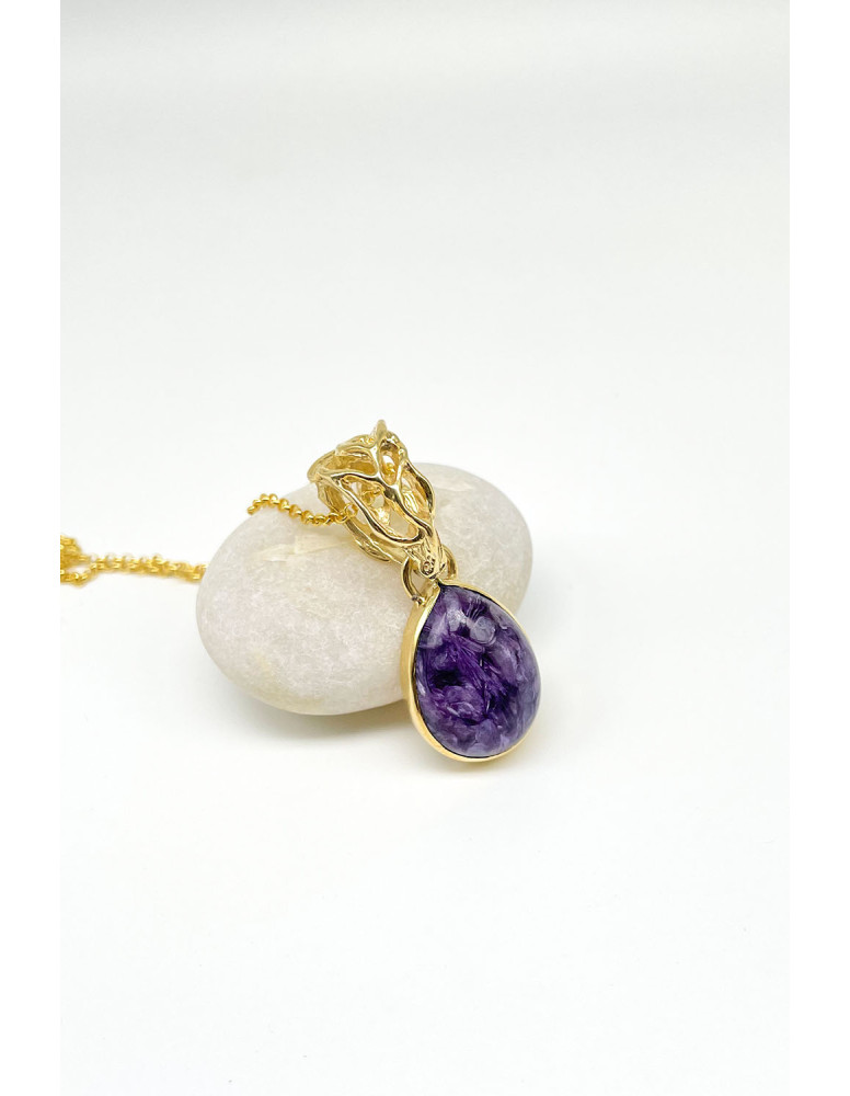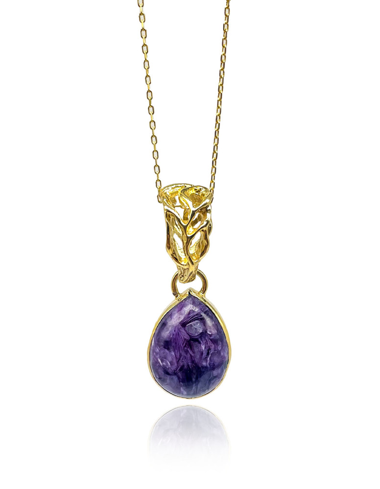 Jewelry'nin Silent Forest Koleksiyonu'na ait Natural Çeroit Taşlı Thales Kolye, doğal güzellik ve zarafeti bir araya getiriyor. El yapımı olan bu eşsiz kolye, sadece tek adet üretilmiş ve 925 ayar gümüş üzerine 18 ayar altın kaplama ile işlenmiştir. Yoğun mor tonlarına sahip çeroit taşı ile süslenen Thales Çeroit Kolye, şıklığınıza mistik bir dokunuş katacak. Doğanın büyüsünü ve sanatı aynı tasarımda hissetmek isteyenler için ideal bir parça.